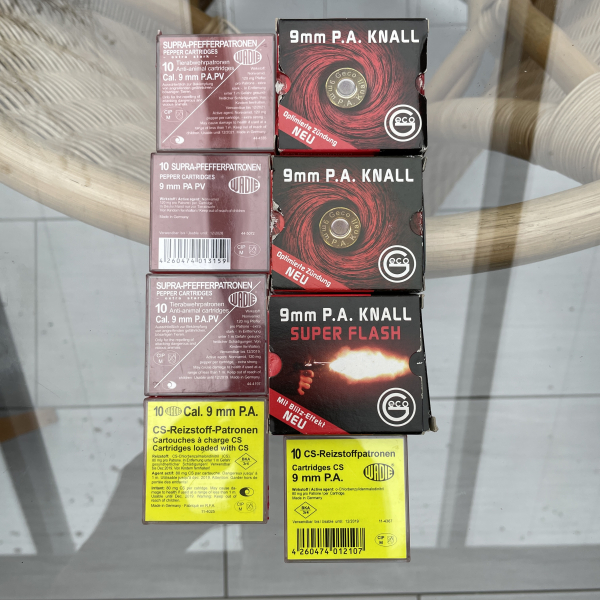 Pistolen 9 mm P.A. Knall + CS-Reizstoff + Wadie Supra Pfefferpatronen 120 mg