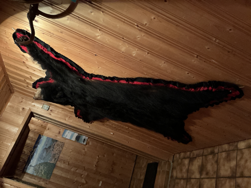Schwarzbär Präparat mit Kopf, geöffnetes Maul, hochwertig gearbeitet mit roter Unterlegung. Seit mehr als 40 Jahren an der Wand hängend, darum in sehr gutem Zustand.