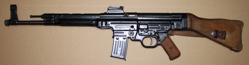 Einmalige Gelegenheit auf ein originales Sturmgewehr 44 bzw. MP44 im Kal. 8x33. Nrgl. in allen Teilen! Gesetzeskonformer Umbau auf Semi Auto durch die Firma Niedermeier in München. Der Zustand ist wirklich sehr gut und es hat auch nur leichte Gebrauchsspuren. Inkl. dazugehörigem Ledertrageriemen. Siehe Bilder. Der Lauf hat sehr gutes Profil. Funktion einwandfrei. Lieferung inkl. 10er Magazin.