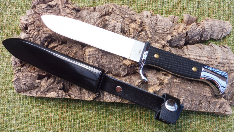 Aus einem guten Menschen einen besseren machen, ist seit mehr als 100 Jahren die Mission der von dem britischen General Robert Baden-Powell begründeten Pfadfinderbewegung. Junge Persönlichkeiten gleich welcher Herkunft oder Religion lernen mit- und voneinander, um auf geistiger, körperlicher als auch sozialer Ebene zu reifen. Bei verschiedenen Aktivitäten wie Zeltlagern oder gemeinsamen Ausflügen wird der verantwortungsvolle Umgang in der Gruppe sowie die Stärkung der eigenen Persönlichkeit angestrebt. Das Leben mit der Natur ist dabei ein elementarer Bestandteil des Pfadfinderlebens, welcher immer wieder große, aber auch kleine Erkenntnisse bereithält. Um die letzten Geheimnisse der Natur zu enthüllen, präsentiert History Knife & Tool das liebevoll nachempfundene German Scout Knife Original als Hommage an alle Pfadfinder. Die Grundform des namhaften Messers erinnert an ein militärisches Bajonett, das mithilfe der schlichten Aluminiumscheide bequem am Gürtel getragen werden kann. Der moderne Nachbau von HKT basiert auf authentischen Originalen sowie amtlichen Unterlagen und verbindet die traditionelle Bauweise mit hochwertigen Materialien. Die stabile Klinge des Fahrtenmessers wird aus 440A gefertigt und ist mit einem Satin-Finish versehen. Der Metallgriff ist mit Einlagen aus schwarzem POM versehen und liegt dank der feinen Texturierung auch bei Nässe stets sicher in der Hand. Das charakteristische Parierelement verhindert ein ungewolltes Abrutschen auf die Klinge und erhöht damit die Arbeitssicherheit der jungen Abenteurer.
