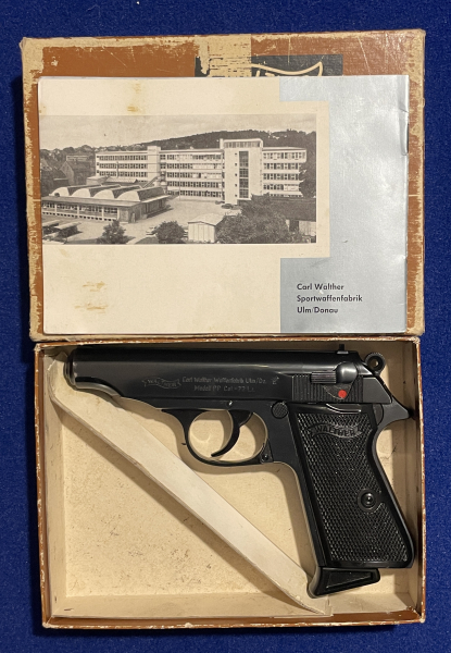Walther PP Ulm Kaliber .22lr in OVP mit Anleitung von 1961, sehr guter Zustand, siehe Bilder
