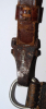 Hänger/Gehänge für den SA Dienstdolch, frühes Stück, noch mit DRGM, garantiertes 100%iges Original!! Leder weich und geschmeidig, Oberfläche rissig (nur die Lackschicht; Leder ist stabil), beim Karabinerhaken ist die Vernickelung schadhaft (Rost), gestempelt: A ; Assmann, DRGM. Gutes ergänzentes Teil für einen getragenen Dolch!