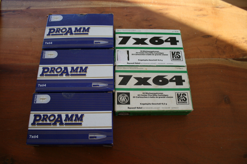 Zum Verkauf kommen 5 Pakete (100 Schuss) DN und PMP im Kaliber 7x64