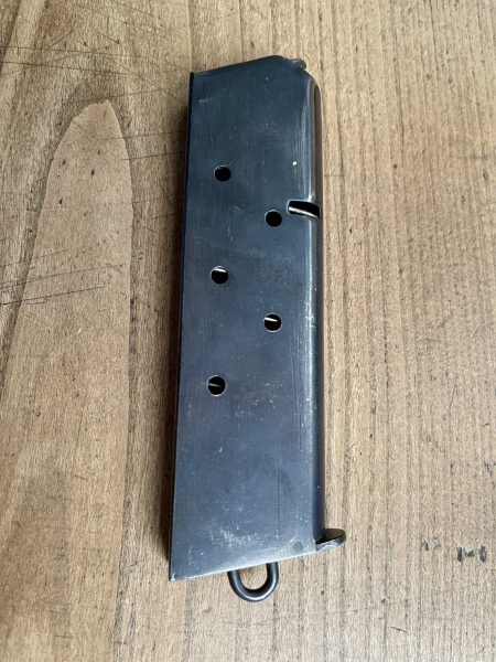 Colt 1911 Magazin mit Lanyard Loop, könnte auch für eine Kongsberg 1911 sein. Zustand siehe Fotos, Privatverkauf, keine Garantie oder Rücknahme, Versand innerhalb der EU 18,00