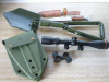 Sie bieten auf den abgebildeten Konvolut: Zielfernrohr mit Montage für Weaver/Picatinny Schiene, mit dabei Montageringe für 11mm Prismenschiene, sehr guter Zustand, klare Optik, keine Beschädigungen, Mildot Absehen, Mittelrohrdurchmesser 1 Zoll, Montage nicht verklebt. US Klappspaten mit Tasche, unbenutzt und AK 47 Messer-Bajonett / Saufänger, ebenfalls unbenutzter, neuwertiger Zustand. Evtl. auch einzelen zu verkaufen. Verkaufe alles als Kopie/ Repro. Privatverkauf unter Ausschluss jeder Gewährleistung, keine Garantie, keine Rücknahme.