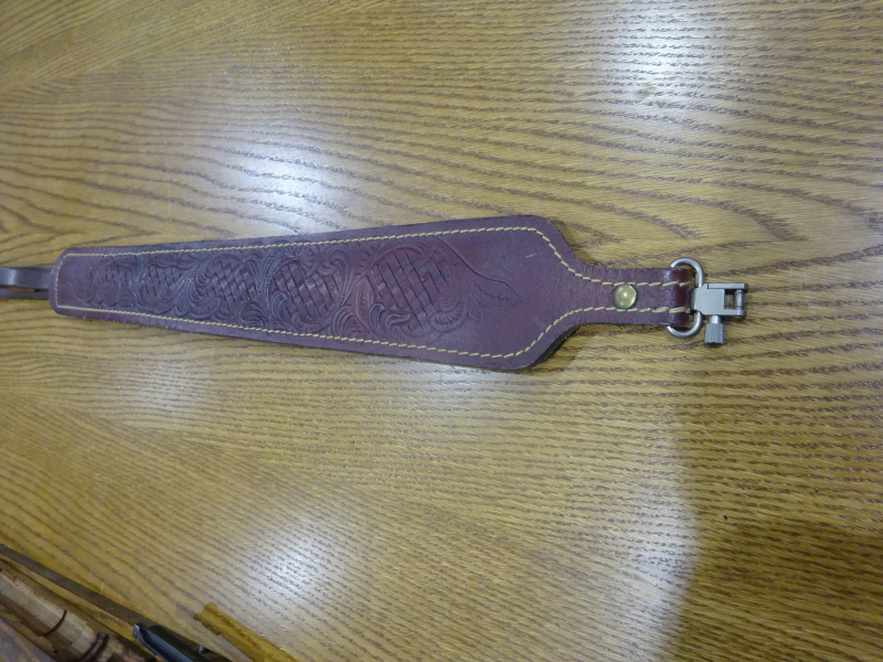 gut erhaltener Gewehrgurt, breite Form mit geprägtem Leder und Schnellverschlüssen, Länge ca. 100 cm, siehe Foto und mein egun