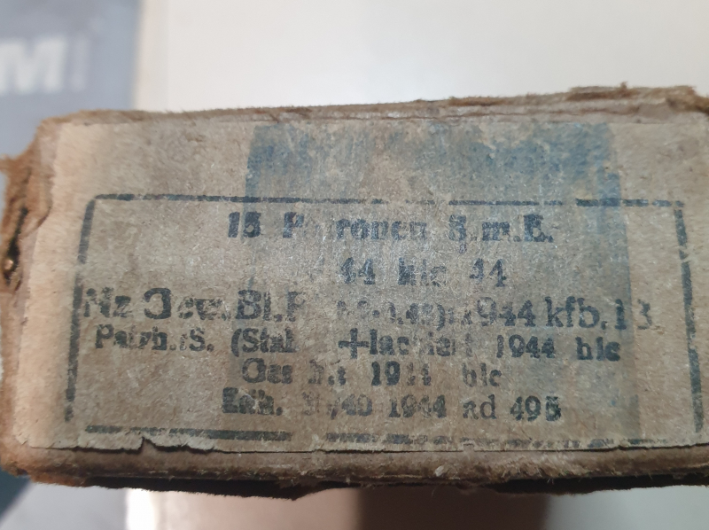 Die im WWII wahrscheinlich am meisten verschossene Patrone der Wehrmacht, die „7,92x57S“ für Gewehr und Maschinengewehr. Sie ist die Nachfolgerin der „Patrone 88“ ( so genannt, weil sie aus dem Jahr 1888 stammt), mit dem Unterschied, daß die Patrone 88 ein Geschoß mit rundem Kopf hatte, was dann - ich glaube es war 1904 - zu einem Spitzgeschoß wurde, daher das „S“ in der Kaliberbezeichnung für „Spitz“. Die einzelnen Elemente des Bodenstempels bezeichnen: Den Hersteller: hlc = Zieh- und Stanzwerke GmbH in Schleusingen/Thüringen Die Hülse: — St+ = Stahlhülse mit verringerter Wandstärke u. Einlochzündung (ab ‘44) Das Herstellungsjahr: 44 (was mit der Hülse übereinstimmt) und die 22 bezeichnet üblicherweise die verwendete Legierung, zu der ich aber leider nichts sagen kann. -> diese Info´s hat ein befreundeter Sammler zusammengetragen & mir zur Verfügung gestellt. Danke dafür ... :-)