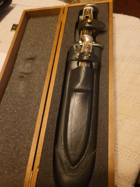 Verkaufe ein Puma Waidbesteck. Der Zustand ist neu, wie zu sehen ist befindet sich auf dem Jagdnicker eine Grafur mit den Initialien FD welche sich meiner Meinung nach leicht raus machen lassen müsste.