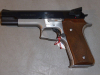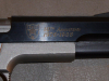 Eingeschwalbte maßive Visierung mit Rampenkorn. Schlitten brüniert mit der IPSC- Aufschrift