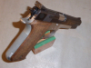 Großer Magazin- Druckknopf. Punzierte Nill Holzgriffschalen.