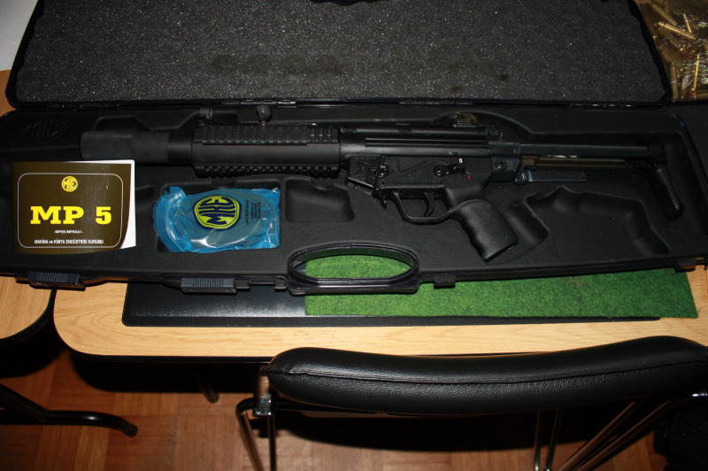 Waffen: gebrauchte MKE halbautomatische Pistole, schallgedämpft. 9mm Luger. T94 SD A2, Pistole kommt ohne den abgebildeten/montierten B&T Vorderschaft und ohne Magazin. einschiebbare Schulterstütze (Hersteller nicht erkennbar) und übriges abgebildetes Zubehör ist dabei, sonst kein weiteres Zubehör/Teile verfügbar. Erwerb auf WHL oder z.B. SV WBK. JJS genügt nicht.