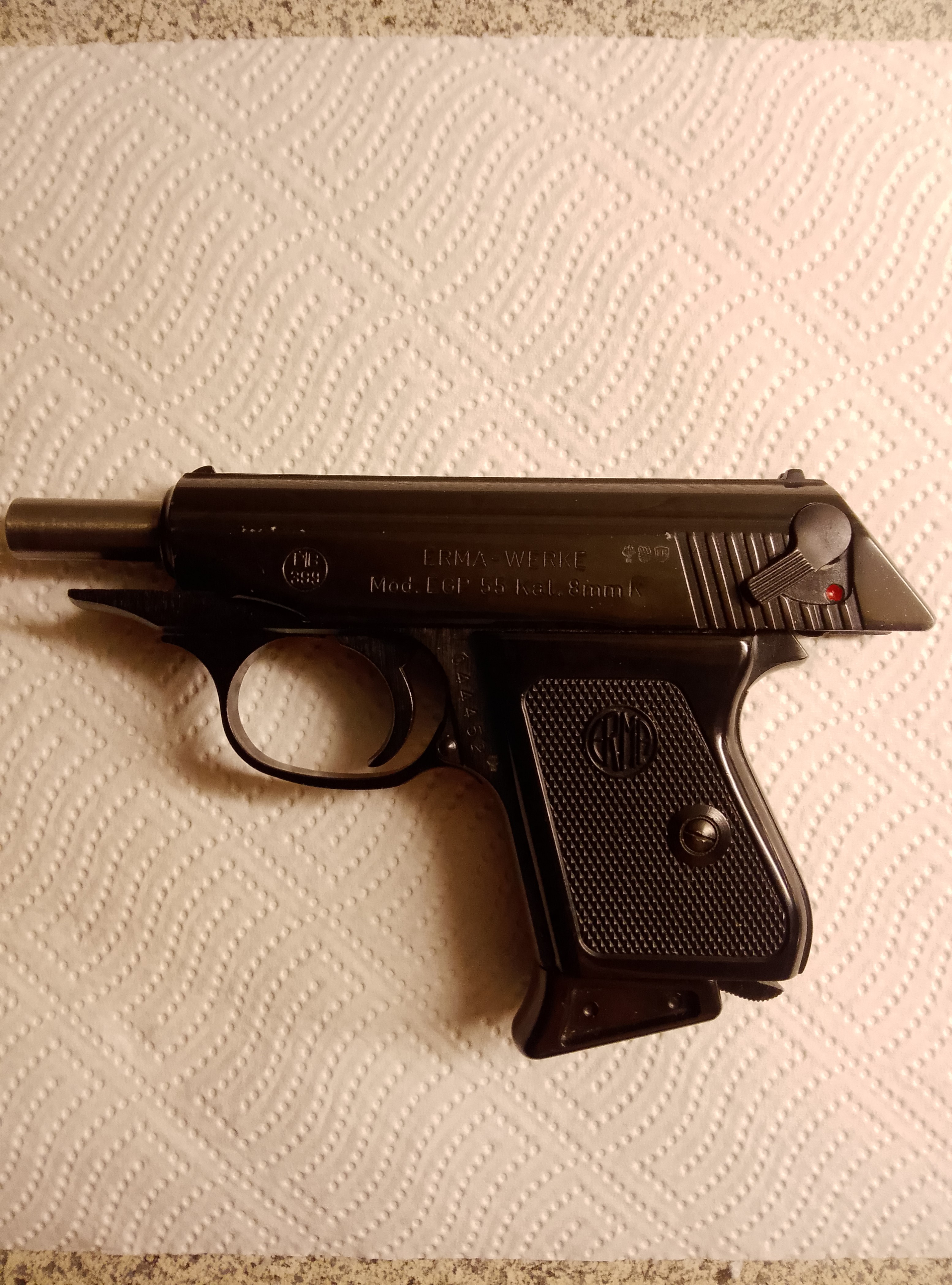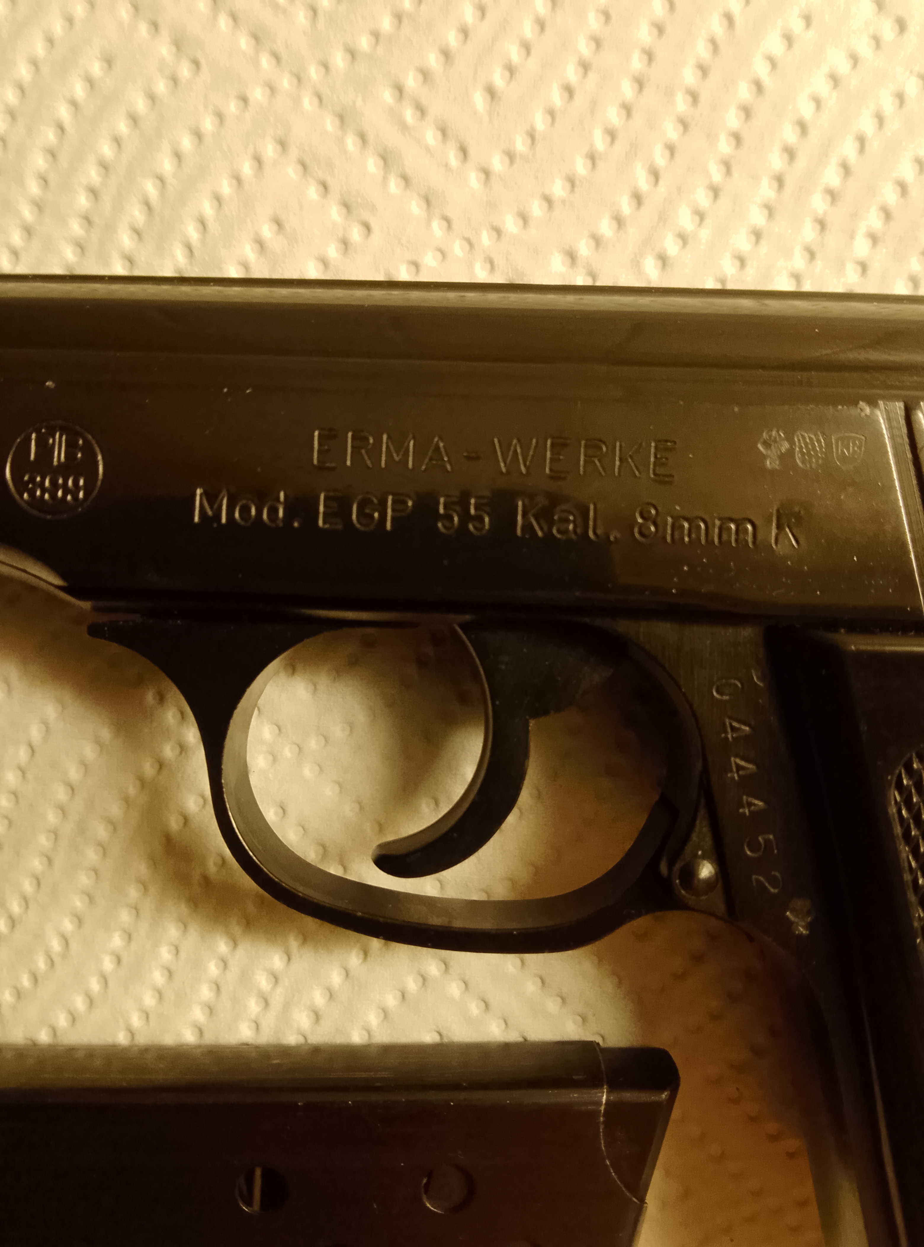 Sie bieten hier auf eine wunderbar erhaltene Erma EGP 55 im Kaliber 8mm Platz. PTB Nummer 399. Sehr klein und führig, leider zu klein für meine zu großen Hände. Magazin natürlich dabei .Sehr sehr gepflegter Zustand.