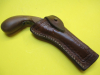 Das Holster ist aus deutschem Leder in Handarbeit gefertigt, in schönem Dunkelbraun eingefärbt und mit einem interessanten Randschlag bearbeitet.