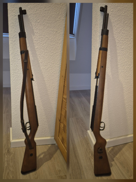 Diana Mauser K98 Luftgewehr, Unterhebelspanner im Kaliber 4,5mm Diabolo, (nur ca. 20 Schuss damit abgegeben!), dazu wurde es mit einem authentischen Repro Trageriemen mit Stempelung ausgestattet. Ein Tütchen H&N Spitzdiabolos lege ich ebenfalls bei.
