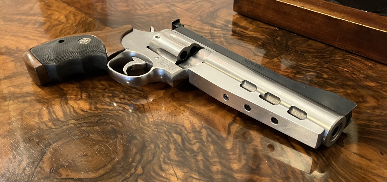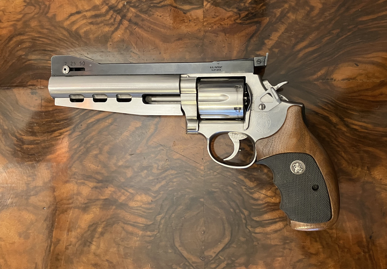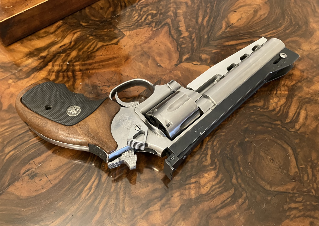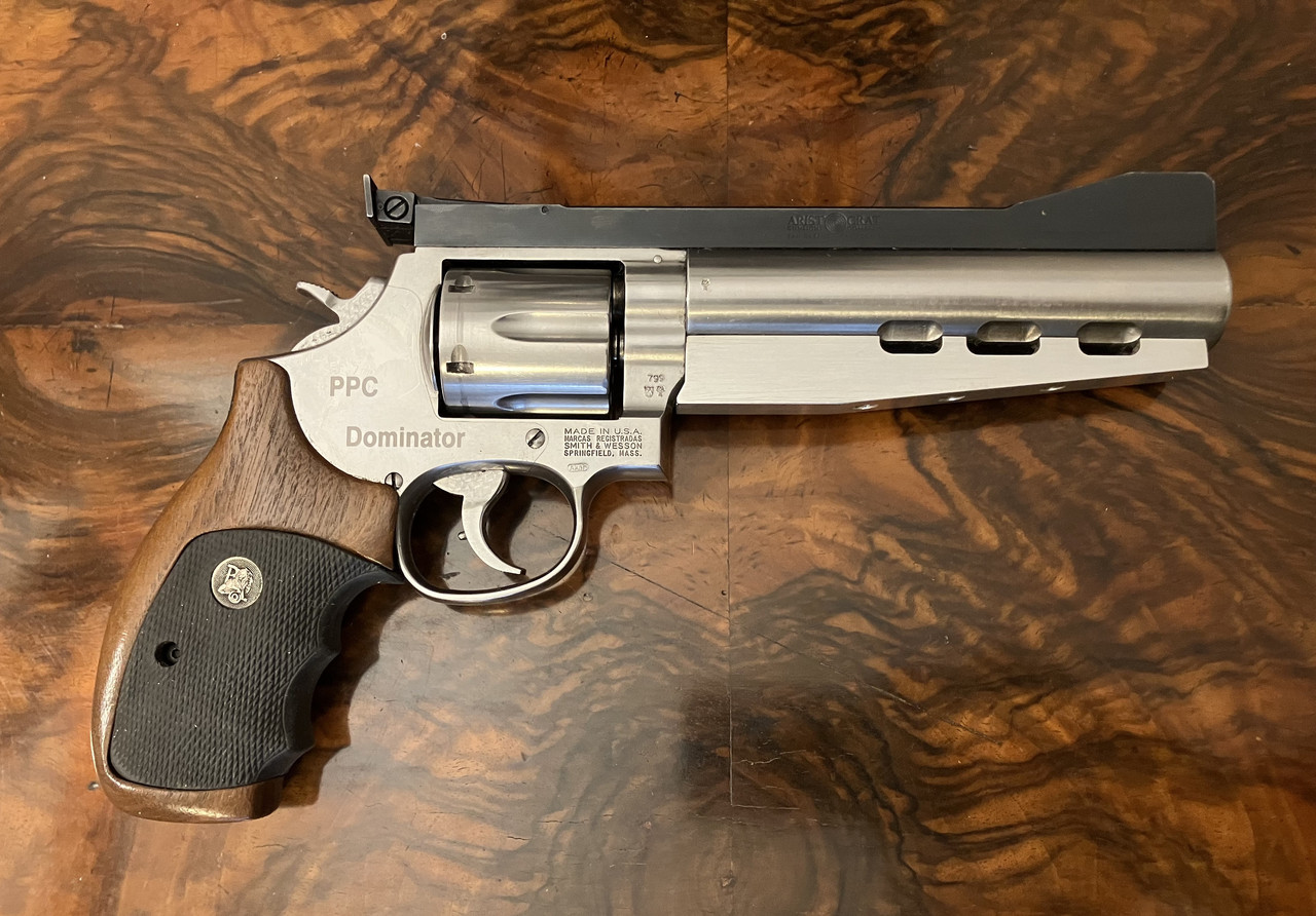 Versteigert wird der abgebildete Revolver PPC Dominator 686 von Smith Wesson in .357 Magnum. Aufgrund des Gewichts liegt der Revolver hervorragend in der Hand und erlaubt eine schnelle Schussfolge ohne aus dem Ziel gestoßen zu werden. Die Waffe ist voll funktionsfhäig und der Lauf befindet sich in einem geplegten Zustand : - )