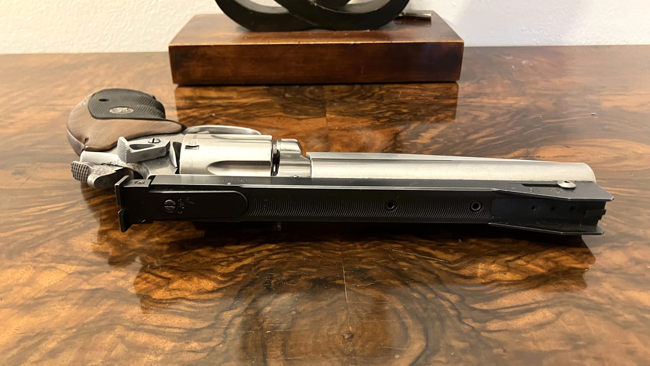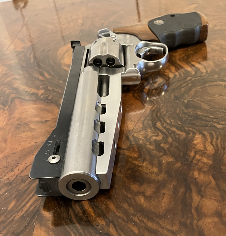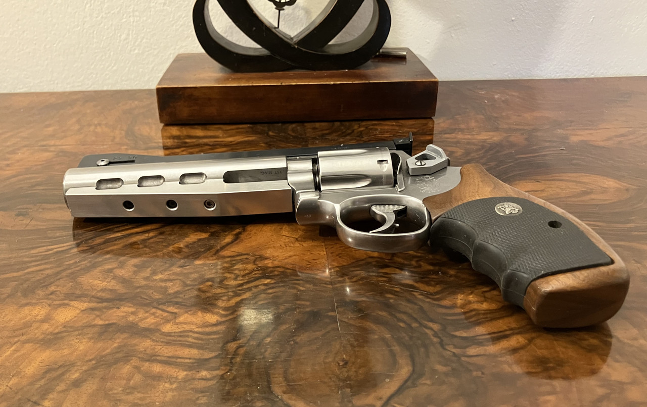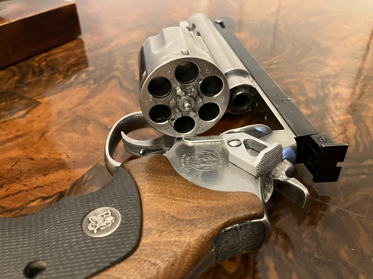 Versteigert wird der abgebildete Revolver PPC Dominator 686 von Smith Wesson in .357 Magnum. Aufgrund des Gewichts liegt der Revolver hervorragend in der Hand und erlaubt eine schnelle Schussfolge ohne aus dem Ziel gestoßen zu werden. Die Waffe ist voll funktionsfhäig und der Lauf befindet sich in einem geplegten Zustand : - )