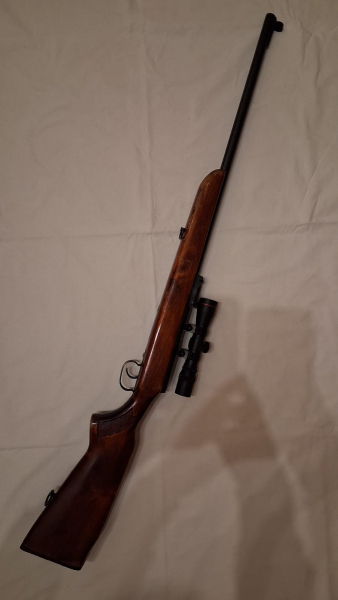 Einzelladerbüchse TOZ Modell 8, Kaliber .22lfb, Zielfernrohr vormontiert, markantes Merkmal: dicker Lauf,