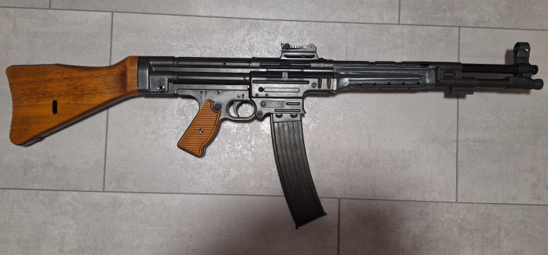 Sie bieten hier auf einen Maschinenkarabiner MKB42 als Modellwaffe! Das Teil ist noch original verpackt und komplett NEU! Alle Teile beweglich und zerlegbar wie beim Original! Das Modellmagazin lege ich ebenfalls mit dazu.