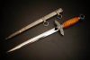 Fundzustand. Geprägte Scheide in sehr gutem Zustand mit saugendem und sehr gutem Sitz der Klinge. Klinge aus Stahl geschmiedet und mit sehr feinem Schliff und Hersteller TIGER Solingen. Trolon Griffstück ohne Schäden !