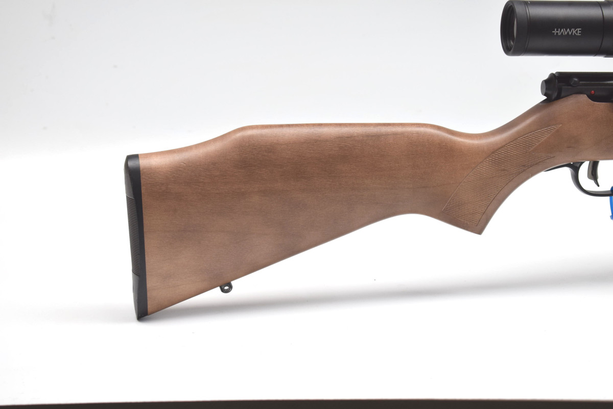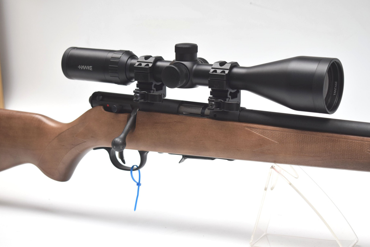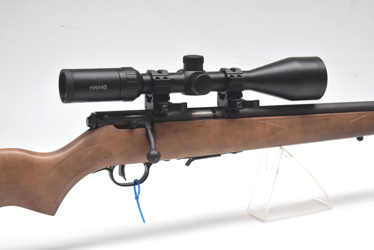 Mündungsgewinde 1/2"-28 UNEF, 5 Schuss Einsteckmagazin Lauf sehr gut, Brünierung 99 %, Schaft sehr gut