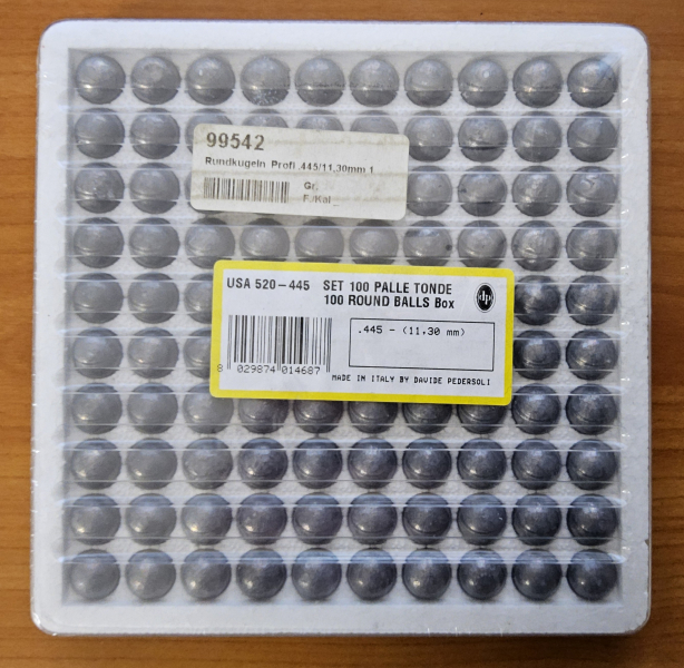 Ich versteigere 100 Stück Davide Pedersoli Profi-Rundkugeln in cal. 445 (11,30 mm) original verpackt.