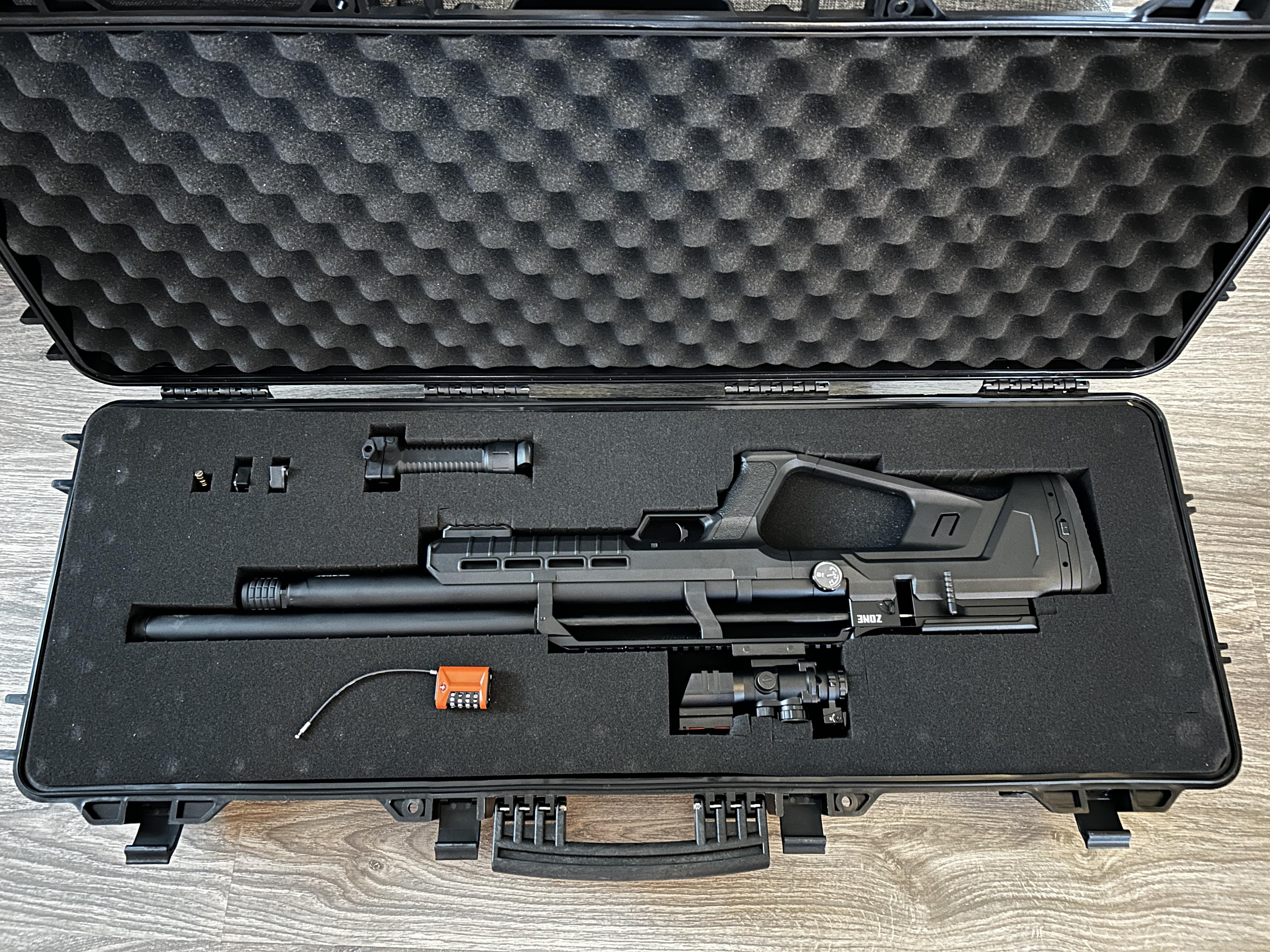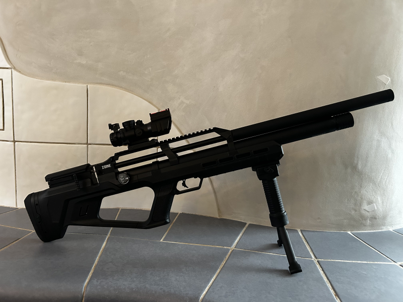 Das PCP Pressluftgewehr Reximex Zone stellt mit seinen geraden und schlichten Konturen eine hervorragende Option für Freizeitschützen dar, die ein zuverlässliches und kraftvolles Pressluft-Gewehr suchen. Es zeichnet sich durch seine erstaunliche Genauigkeit und einer beachtlichen Leistung von ca. 7 Joule aus. Die PCP Waffe mit Bullpup ähnlichem Charakter ist mit einer modernen Dämpfungstechnologie ausgestattet, die den Rückstoß minimiert und verfügt über einen hochwertigen Kunststoffschaft mit Soft-Touch-Beschichtung, die für einen sicheren Griff sorgt.