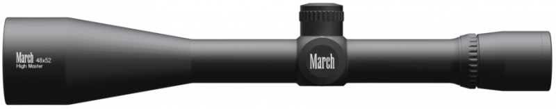 The fixed power High Master 48x52mm scope is the ultimate fixed power scope, based on the very successful March 40x & 50x scopes. The High Master Lens System has 2 Super ED lens elements within its lens system. By using Super ED lens elements, we can suppress chromatic aberration even more than with ED lenses and thus produce a sharper image with greater contrast, while still having a strong scope. The 48x52mm High Master offers superior image quality and clarity right to the edge of the lens, using Super ED lens and high-refractive glass. This scope is suitable for benchrest shooting.