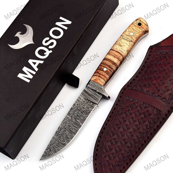 Hier erhalten Sie ein sehr schönes Hand geschmiedetes Damast Jagd Messer in reizvollem Torsion Muster.