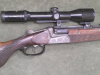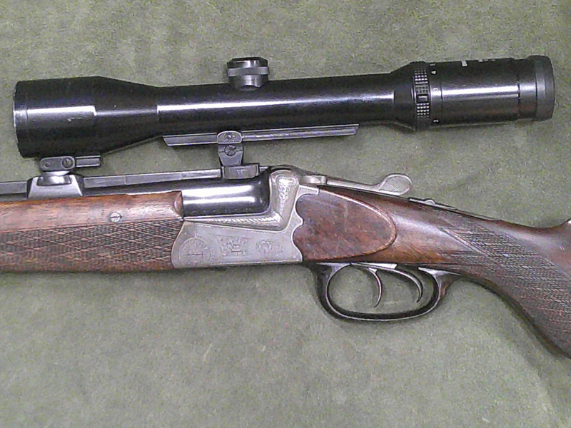 Bockdoppelbüchse Hauptmann Ferlach, Kal. 7x57 R, Rückstecher im vorderen Abzug. Zielfernrohr Swarovski Habicht Nova 1,5-6x42 Absehen 1, Suhler Einhakmontage, normale Gebrauchspuren, kein Rost, Läufe blank.