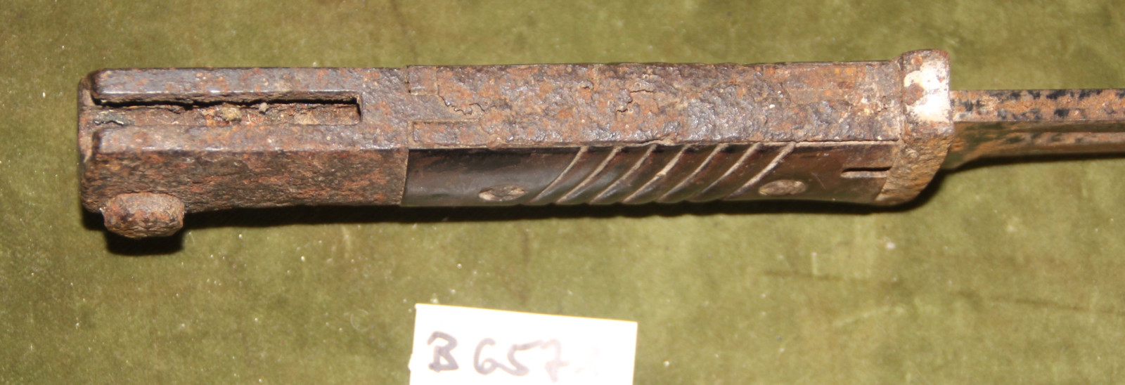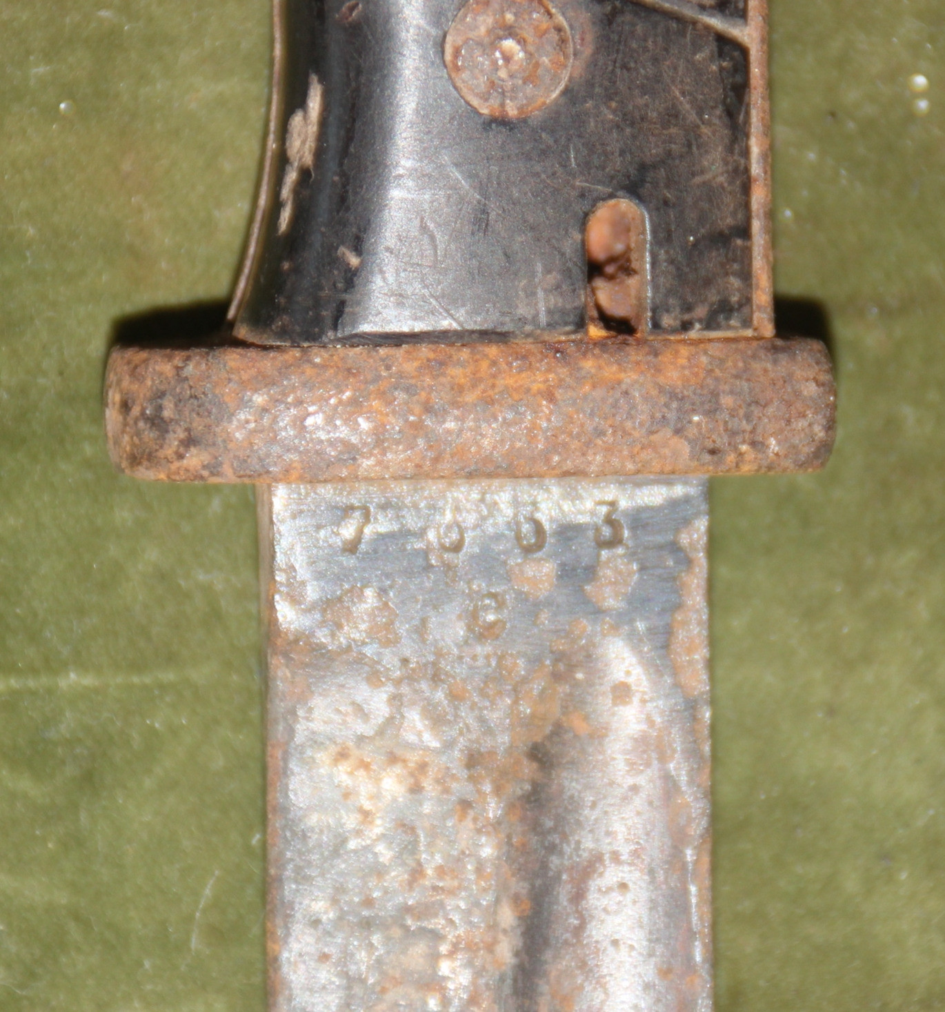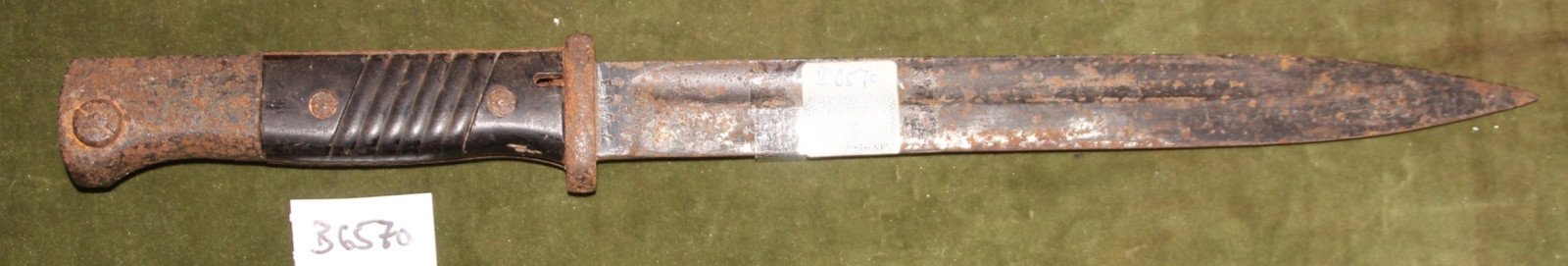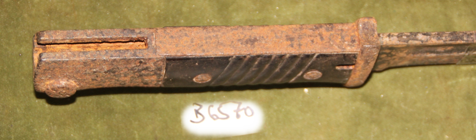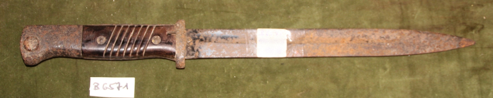 B6570 Deutsches Bajonett M 84/98 III, mit Bakelit-Griffschalen, ohne Scheide, angerosteter, narbiger Boden- oder Scheunenfund,