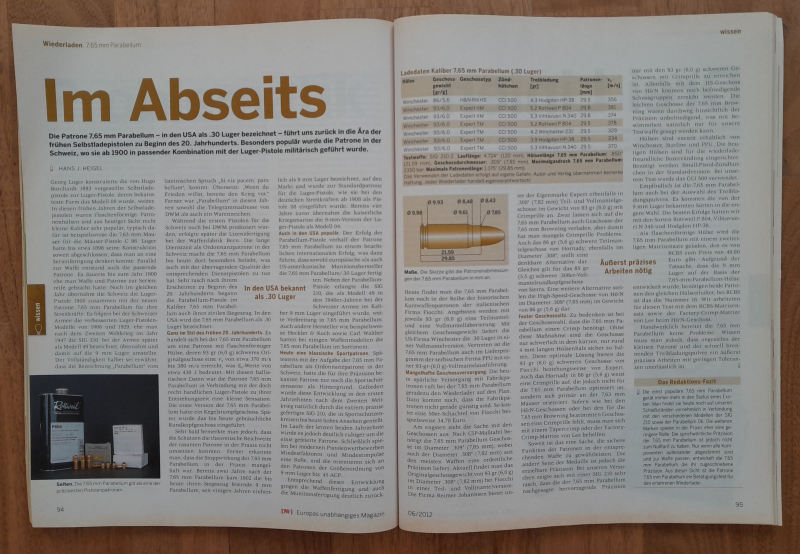 DWJ heft Wiederladen der Schweizer Parabellum 7,65mm