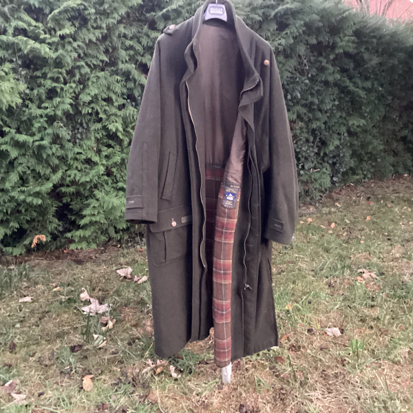Loden Ansitzmantel , warmer Mantel für die kalte Jahreszeit und den Winteransitz Gr. 60 weit geschnitten mit seitlichen Reißverschlüssen im Beinbereich. Orginal Pichel Loden, Schurwolle - Länge 140 cm. Geht beim Ansitz über die Knie. Der Kragen kann hoch geschlossen werden. Mit Reißverschluss und Knopfleiste. Windbündchen in den Ärmeln.