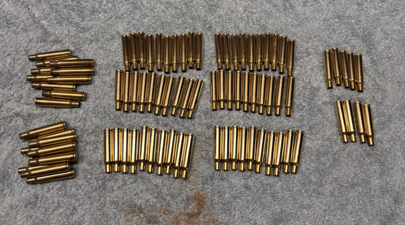 Insgesamt 89 Hülsen. 69 Stück neu 20 Stück 1x abgeschossen.