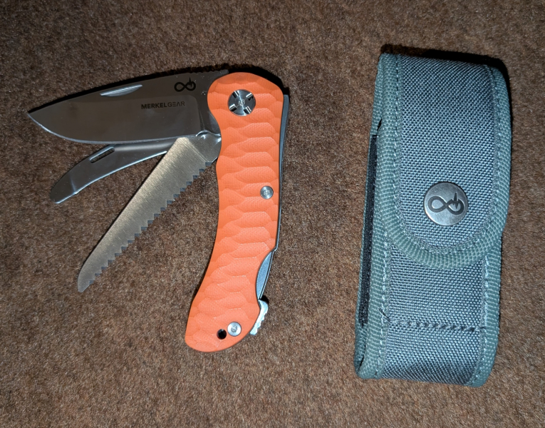 - Hauptklinge, Sägeklinge, Aufbrechklinge - Klingen jeweils mit Backlock-Arretierung - aufschraubbar = hygienisch - Cordura-Gürteletui - Gesamtlänge in cm: 20 - Klingenlänge in cm: 8,5 - Hauptklingenstärke 2,9 mm, Aufbrechklingenstärke 2,1 mm, Sägeklingenstärke 1,9 mm - Klingenstahl: 440C - Grifflänge in cm: 11,5 - Griffmaterial: G10 - Gewicht in g: 225
