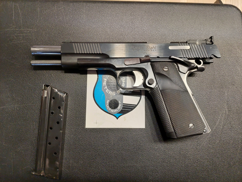 Verkaufe gut erhaltene Peters Stahl im Kal 9mm Para und Originalkoffer an. Die Waffe wurde 2012 seinerzeit von Peters Stahl komplett überholt ( Lauf , Schlitten , Feder , Griffstück ) ! Bei Selbstabholung lege ich noch 250 Schuß 9mm Para mit dazu ! Desweiteren sind noch Geschosse , Zündhütchen , Munition vorhanden !