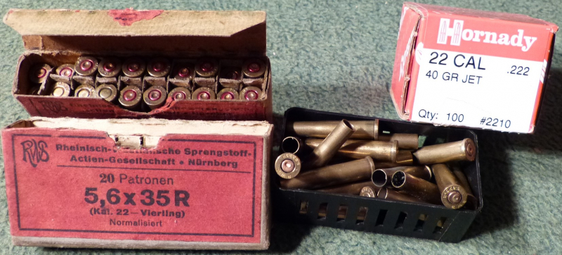 Wir bieten im Auftrag von Privat aus einem Nachlaß die selten angebotenen und gesuchten Wiederladehülsen im Kaliber 5,6x35R (Vierling) von RWS in 3 Originalschachteln mit 60 Patronenhülsen einmal abgeschossen als Originalpatrone zum Wiederladen. Das Wiederladen ist nicht vollendet worden, wegen fehlendem Equipment. Sie können aber noch extra die dazugehörenden Geschosse und Zündhütchen, die auch noch vorhanden sind, dazukaufen.