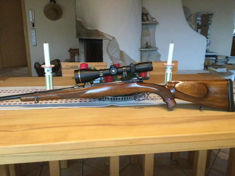 Manlich-Schönauer GK, 7x57, mit Leupold 3-9x50 VX Rotpunkt R, Waffe hat Gebrauchsspuren insbesondere am Schaft, Leupold-Zielfernrohr auf Hebel-Schenkmontage in sehr gutem Erhaltungszustand, Rotpunkt in mehreren Stufen fein einstellbar, Schaftlänge bis Abzug 36,5 cm, Lauf blank, Schussleistung auf Schießstand überprüft (TIG) und vom Waffenhändler als in Ordnung befunden, Kaliber schießt sich sehr angenehm