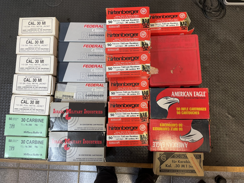 Sie bieten hier auf ein Konvolut von .30 Carbine Munition 110grain . Packungen teils geöffnet, teil noch Original verschlossen.