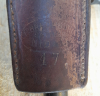 Zustand siehe Bilder. Die Klinge ist gerade. Der Drücker ist gängig. Die Scheide ohne Dellen/ Beulen. Dazu eine Tragetasche („Frosch“) in der unten ganz schmalen Fertigungsvariante. Wie das Bajonett sind diese ebenfalls sehr selten! Zeitgenössischer Sattlerstempel und Jahrgang. Mit der falschen, breiten Tasche vom Standardbajonett ergänzt sieht das so richtig übel aus!