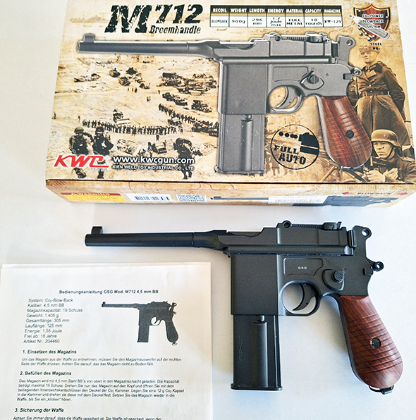 Ein Klassiker der Waffen-Geschichte! - Airsoftvariante der Mauser M712 mit entnehmbarem Magazin. - Die Waffe besteht komplett aus Metall, der Griff aus Kunststoffschalen. - Die GSG M712 verfügt über ein CO2-Blowback-System und liefert dadurch ein realistisches Schussverhalten. Kaliber: 4,5 mm BB – Magazinkapazität: 19 Schuss – Gewicht: 1,4 kg – Gesamtlänge: 305 mm – Energie: 1,7 Joule – Das Modell verfügt über eine höhenverstellbare hintere Visierung. - in OVP und Bedienungsanleitung – Sammlungsauflösung - Bestzustand nur 2 kleine Kratzer auf dem Magazin.