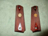 Exclusive Holzgriffschalen für Pistole Colt, Mod. 1911, Gold Cup, Government usw. Schönes Holz (evtl. Rosenholz?), fein geschnitene Fischhhaut