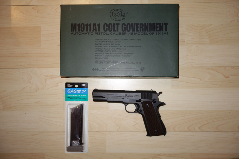 Zum Verkauf kommt hier eine Tokyo Marui (TM) Colt M1911 GasBlowBack in sehr gutem Zustand. Es ist ein Vitrinenmodell mit fast keinen Gebrauchsspuren und zweitem Magazin. Leider ist das mitgelieferte Magazin undicht.