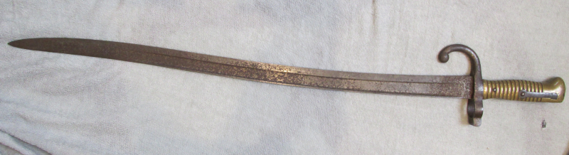 Langes Bajonett Säbel leicht gebogen ohne Scheide , Nummer auf der Parierstange V268 Drücker funtioniert. Länge 70 cm