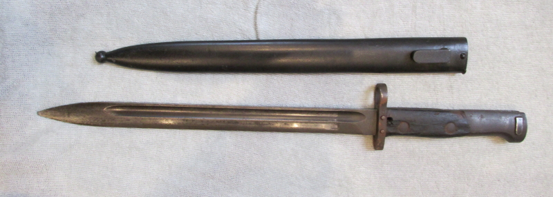 Bajonett mit Scheide Drücker funktioniert, guter Zustand , sonst nichts weiter drauf, Länge 45 cm.