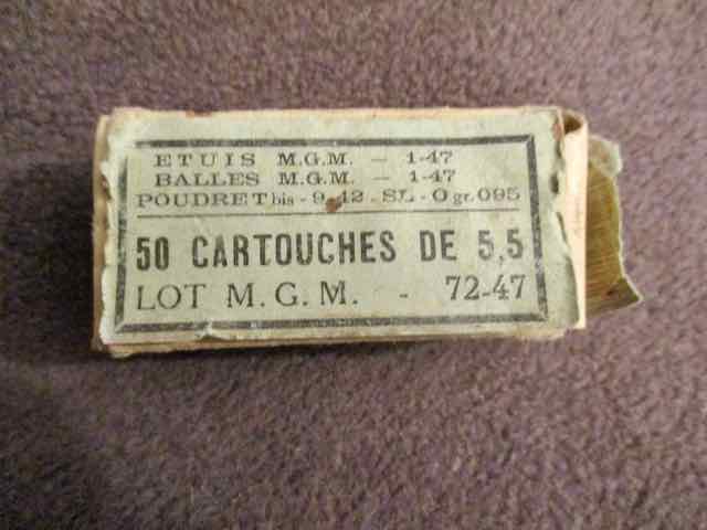 50 Patronen 5,5mm (Kleinkaliber). Dreisprachigeer Hinweis auf die Patrone. Schachtel ist vollständig aber geöffnet. Kein Inernationaler Versand.