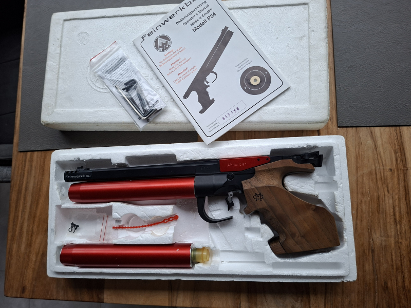 Verkaufe meine FEINWERKBAU P34 Luftpistole, mit MORINI-Griff.