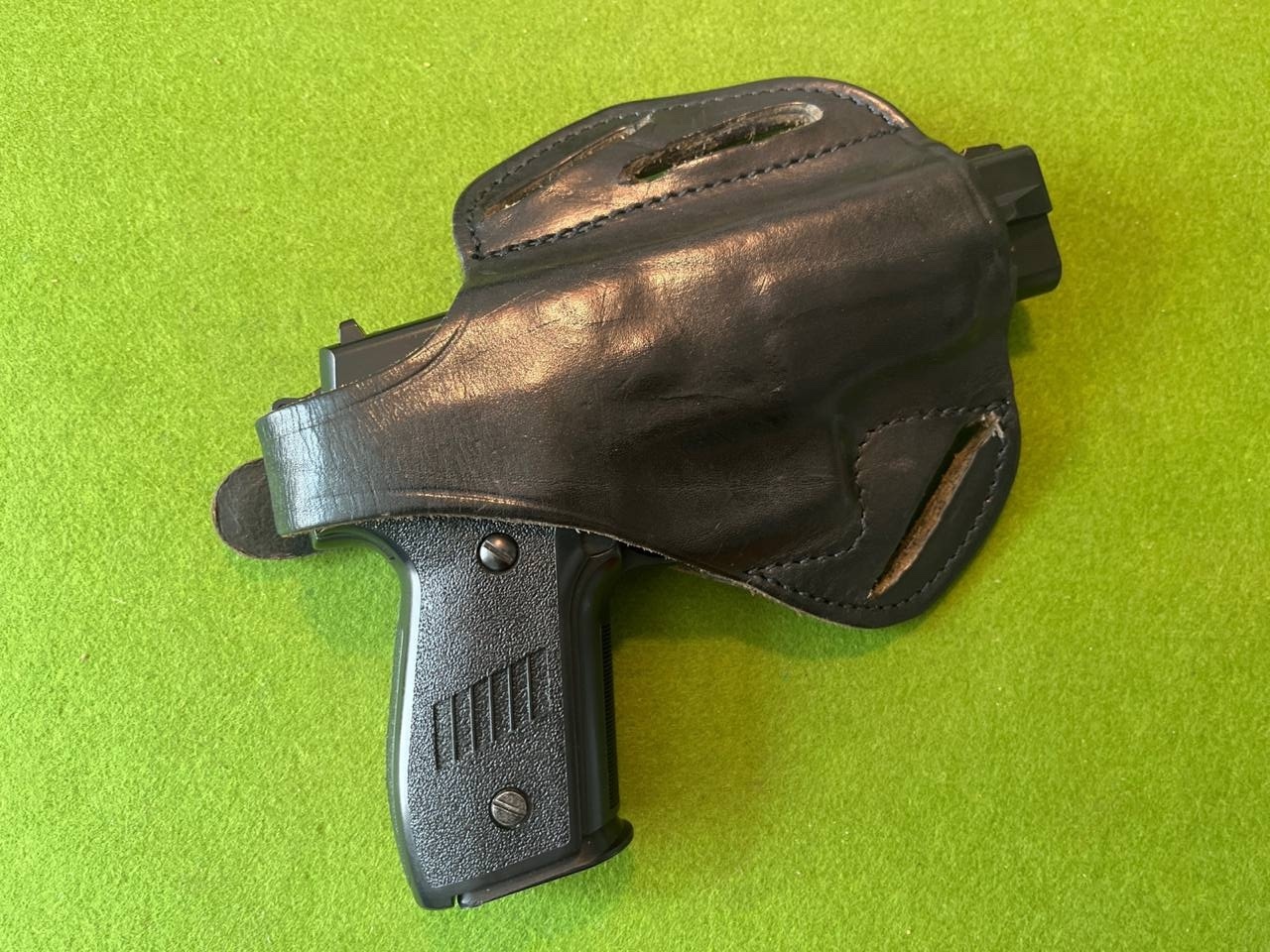 bieten die Aufnahme eines Gürtels bis ca. 48mm. Inhalt hier oben eine SSW- Ausführung der klassischen S&W 39/59.