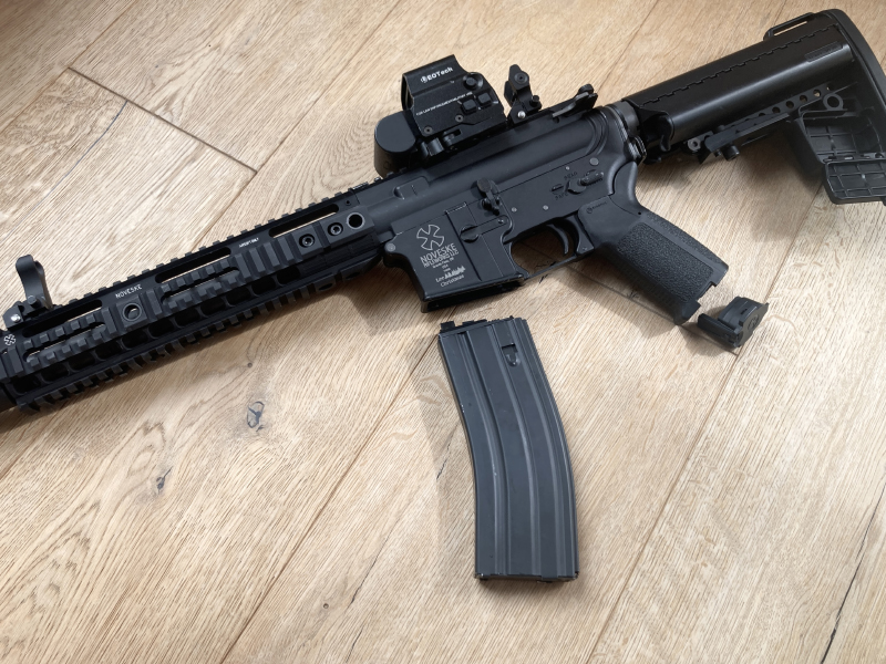 Als Plattform für dieses Setup dient eine M4CQB GBB von Socom-Gear, gekauft bei Kotte/Zeller. Beleg ist