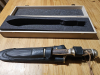 Puma Waidbesteck nach Oberforstmeisster Frevert im unbenutzten Originalzustand.Grosses und kleines Waidblatt in High Version mit Hirschhorngriffen.In original Box und Lederscheide.
