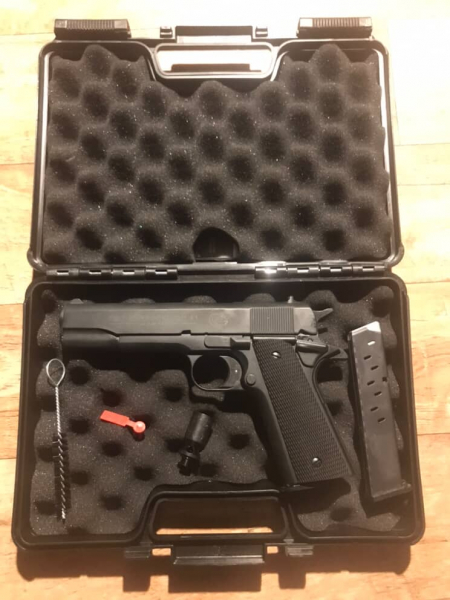 Der berühmt, berüchtigte amerikanische Colt Government ist eine der meist verbreiteten Pistolen - hier in der Gas-Signal-Version im Kaliber 9mm P.A.K. - zur Selbstverteidigung und für das Silvesterschießen geeignet.